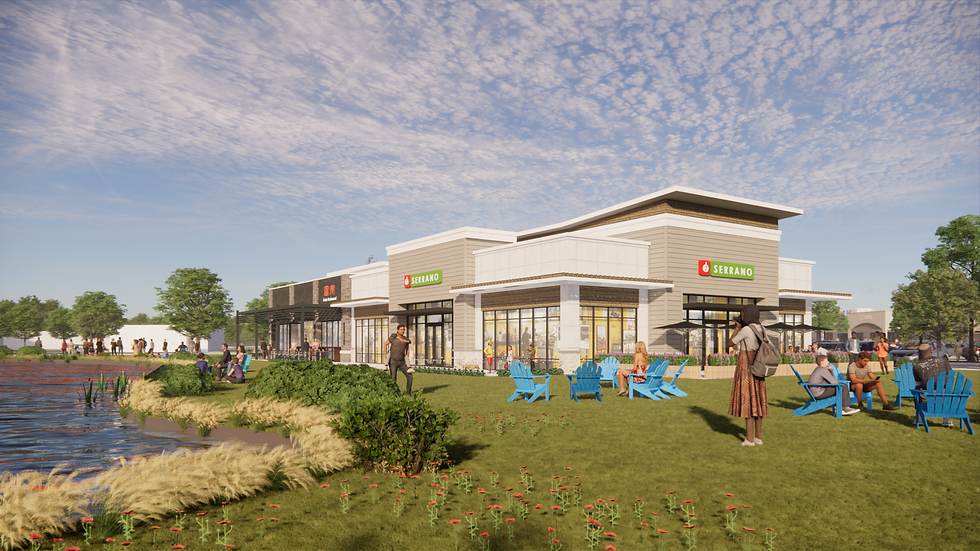36,000 SF of office space. A modern hotel will enhance local tourism, while 320 market-rate multi-family units will offer quality housing options. At the heart of the project, a central green plaza will provide gathering areas and promote community interaction. Additionally, the development retains options for Belk to remain within its existing footprint, preserving a key retail option within the development.